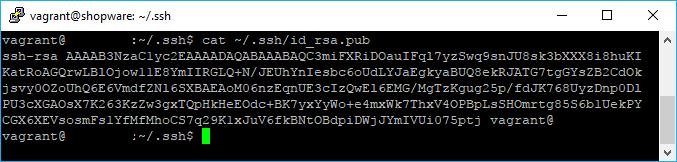 This will automatically search in the folder of your user that in our case is /home/vagrant/.ssh, if the output of the command shows a string that starts with ssh-rsa, then you already have an SSH Key that you can use to add to your repository, so you can skip to the step 2. If instead, you get the output : cat: ~/.ssh/id_rsa.pub: No such file or directory, then you will need to create an SSH Key first. You can create a SSH Key in Ubuntu via SSH with the following command (navigate to the .ssh directory first and type):